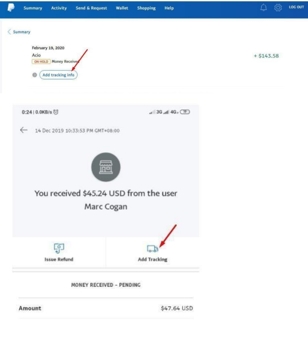 ПРИМЕЧАНИЕ: если вы не видите "Add Tracking Info", перейдите на классическую версию сайта в настольной версии, или обратитесь в службу поддержки PayPal.
